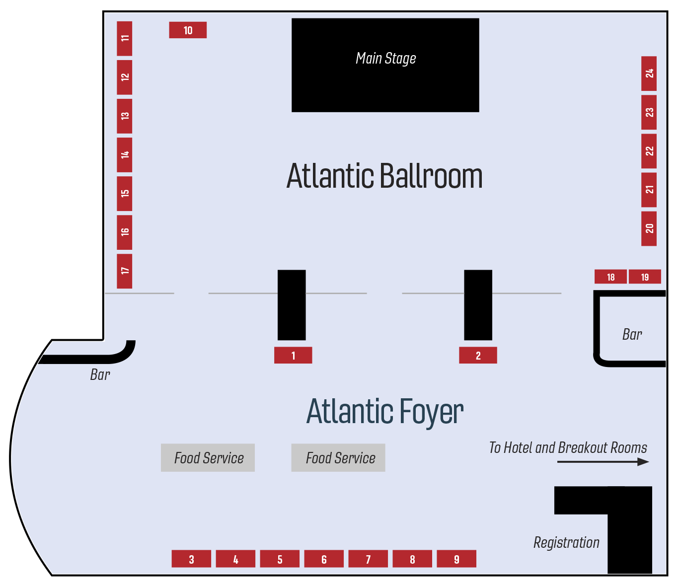 • Recognition: Logo placements acknowledging sponsorship next to the beverage service table, intermission slideshow